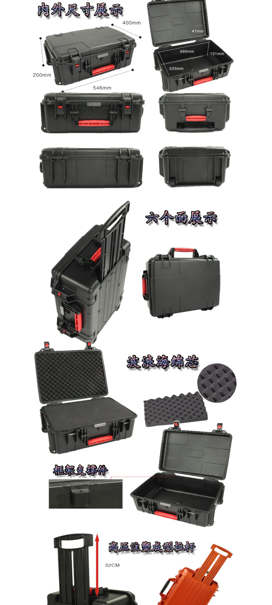 簡要說明:廣泛用于傳媒、公安、消防、軍隊、航空、戶外攝影、野外考察、科學探測等眾多領域的高端儀器、儀表。具有高強度、高抗壓沖擊、防潮、絕對密封、防塵、防水等特點。產品材質:ABS原料,箱體采用高抗沖擊的高分子聚合材料一體注塑成型,密封采用扁型彈性發泡密封橡膠條,確保防水氣密,所有較軸均采用不銹鋼材質。