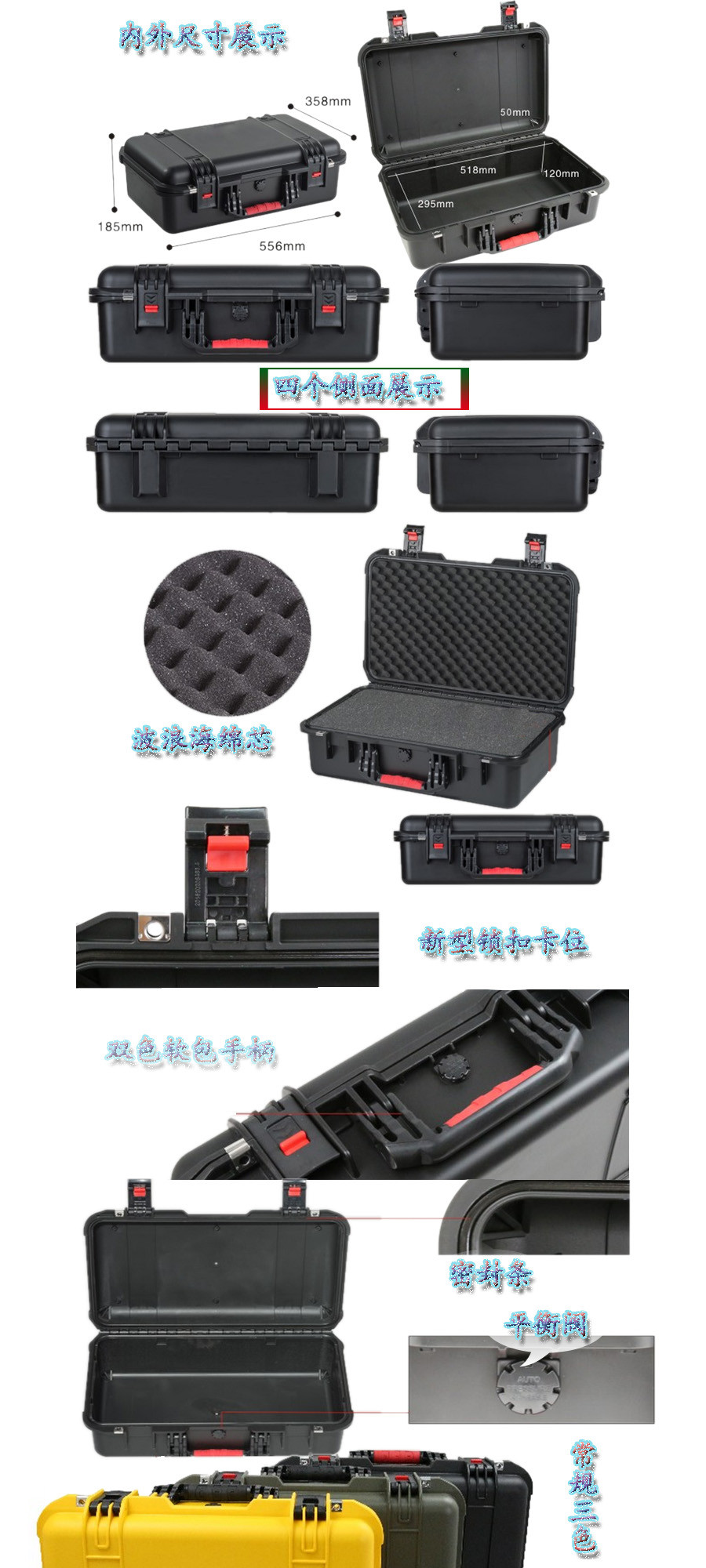 簡要說明:廣泛用于傳媒、公安、消防、軍隊、航空、戶外攝影、野外考察、科學探測等眾多領域的高端儀器、儀表。具有高強度、高抗壓沖擊、防潮、絕對密封、防塵、防水等特點。產品材質:ABS原料,箱體采用高抗沖擊的高分子聚合材料一體注塑成型,密封采用扁型彈性發泡密封橡膠條,確保防水氣密,所有較軸均采用不銹鋼材質。