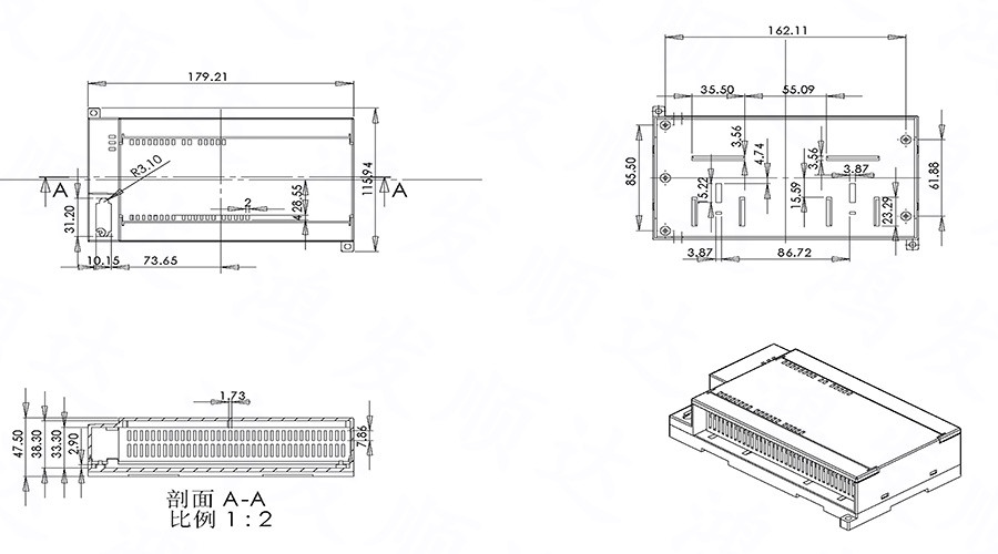 簡介:廣泛應用于電子行業中各種PLC模塊電路、控制器單元、配電器模塊等 。具有完全絕緣性保護、散熱性良好等特點。均采用ABS/PC原料生產,符合ROHS環保標準、性能好、耐高溫,不加入任何再生料。可根據客戶要求重新開模具。